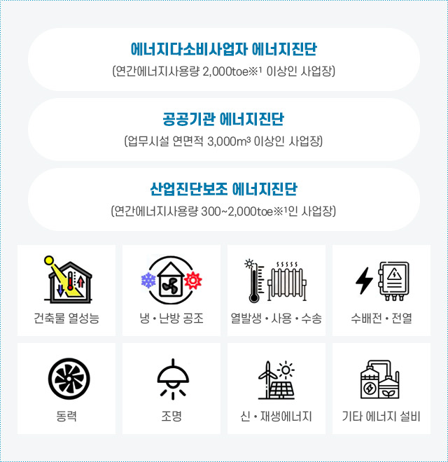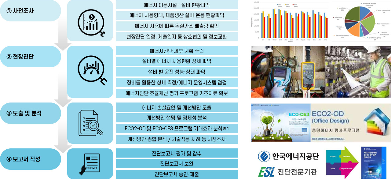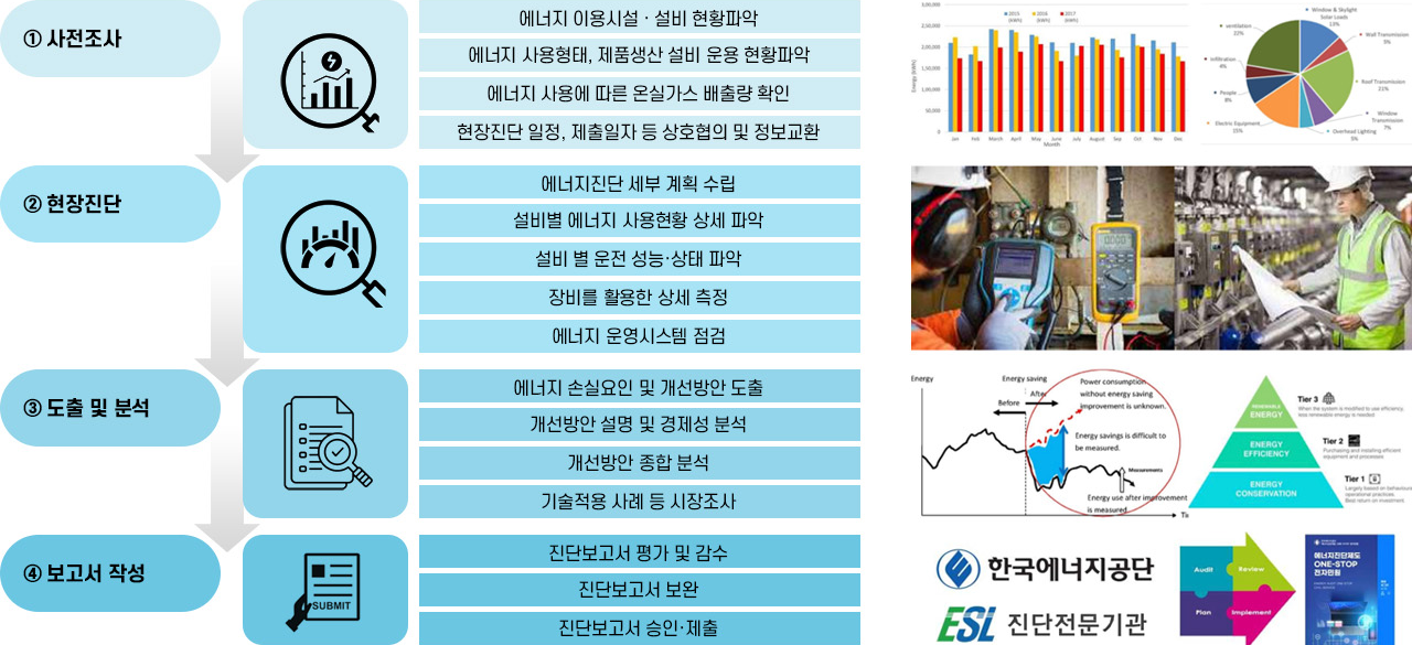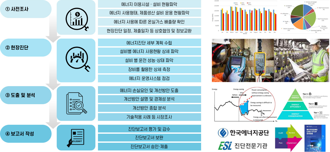 에너지진단 사업장에게 현재 에너지이용 상황에 맞는 에너지진단 솔루션을 제공하여
